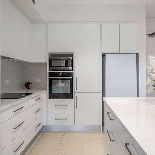 Kick board: Matt white PVC same as door panel finish